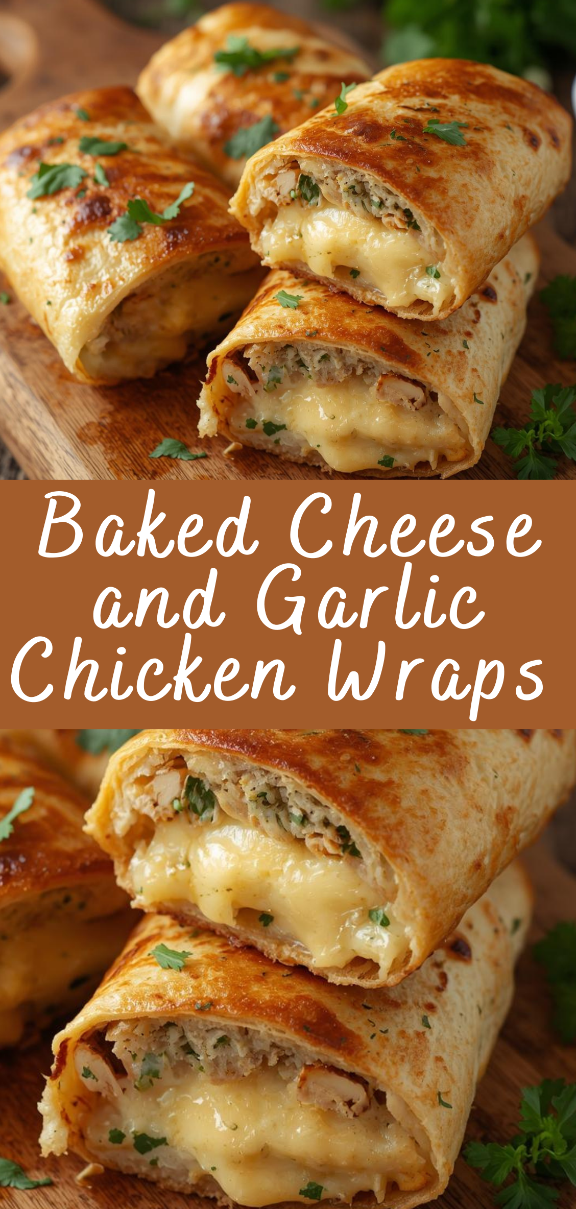 These Baked Cheese and Garlic Chicken Wraps are crispy on the outside and irresistibly cheesy on the inside.