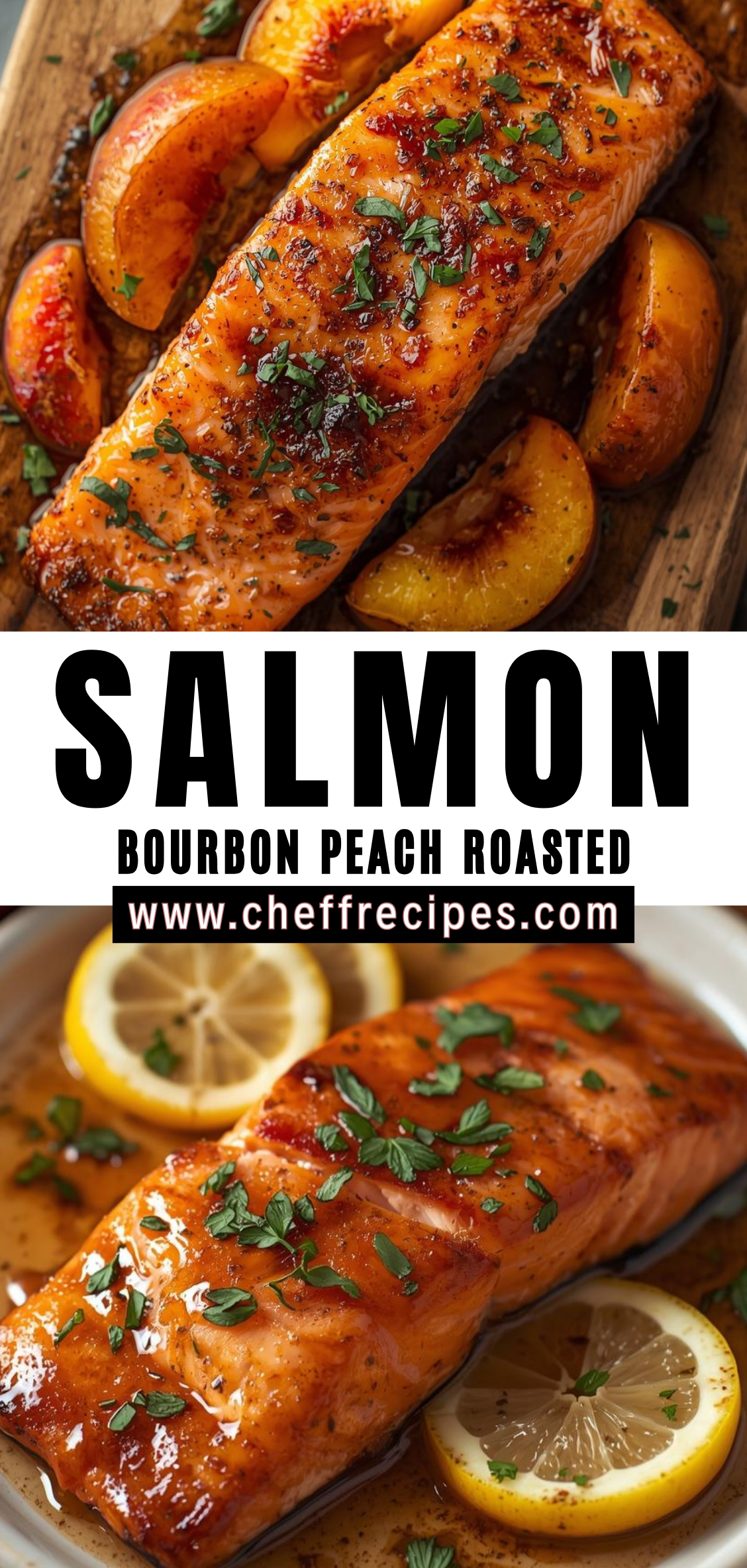 Tender roasted salmon glazed with a sweet-savory peach sauce. The peaches add bright summer flavor, while a bourbon-style note (or a non-alcoholic substitute) gives gentle warmth balanced by Dijon and soy. It’s elegant enough for guests but simple for a weeknight.
